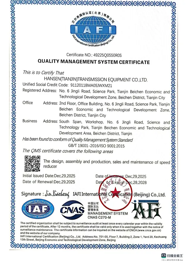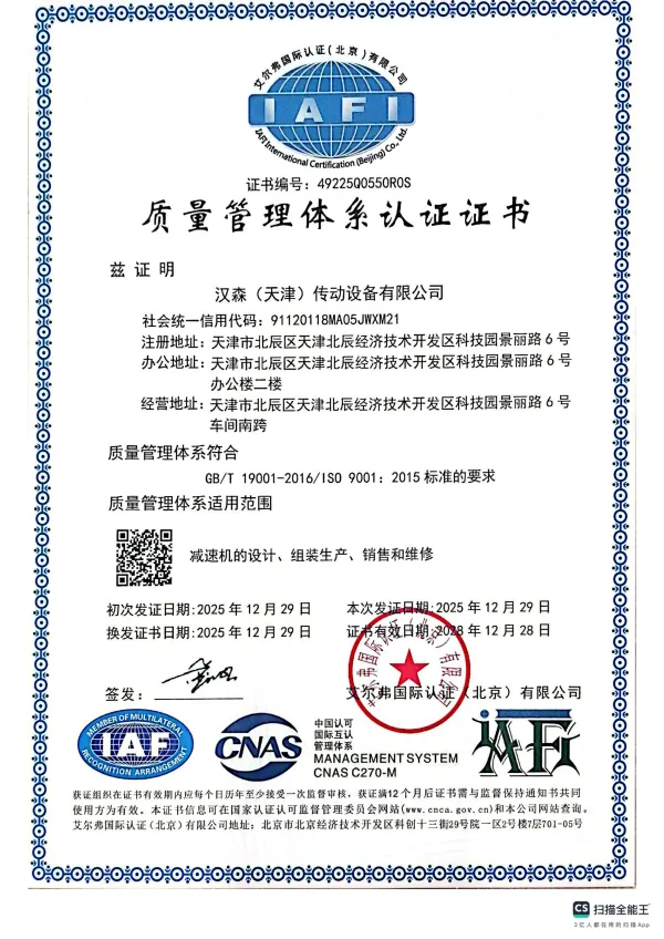 В промышленных артериях редукторы являются сердцем, приводящим в движение современные производственные линии. ООО Ханьсэнь (Тяньцзинь) Трансмиссионное Оборудование является надежным источником энергии в этой ключевой области. Компания расположена в зоне высокотехнологичного экономического и технического развития района Бэйчэнь города Тяньцзинь, Китай. С момента своего основания она всегда опирается на передовые производственные технологии и процессы в отрасли зубчатых передач, углубленно занимаясь производством редукторов Ханьсэнь, а также профессионально принимая проекты по замене редукторов международных брендов, таких как SEW и FLENDER, стремясь предоставлять клиентам эффективные и надежные решения в области трансмиссии.